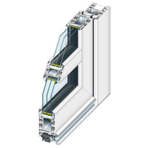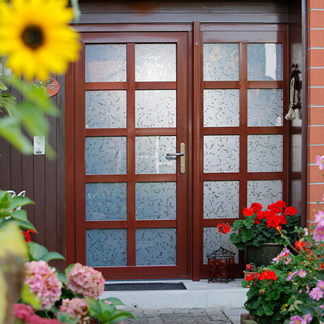 Diese klassische Sprossentüre aus stahlverstärkten Hartkunststoff-Profilen bietet elegante Möglichkeiten der optischen Gestaltung: Die Sprosseneinteilung kann mit einer Vielzahl von verschiedenen transparenten, halbtransparenten oder matten Gläsern oder mit Paneelfüllungen gefüllt werden.